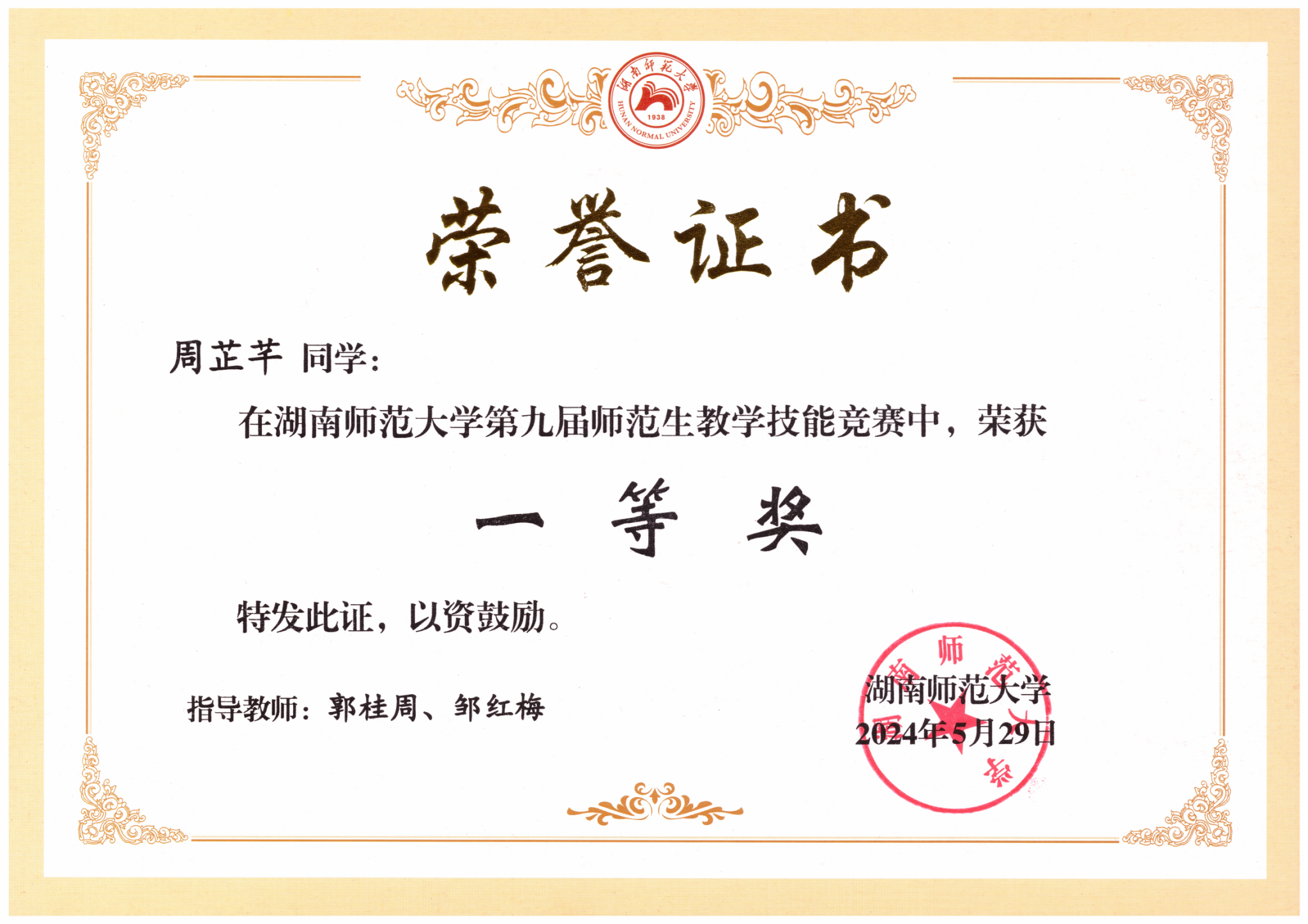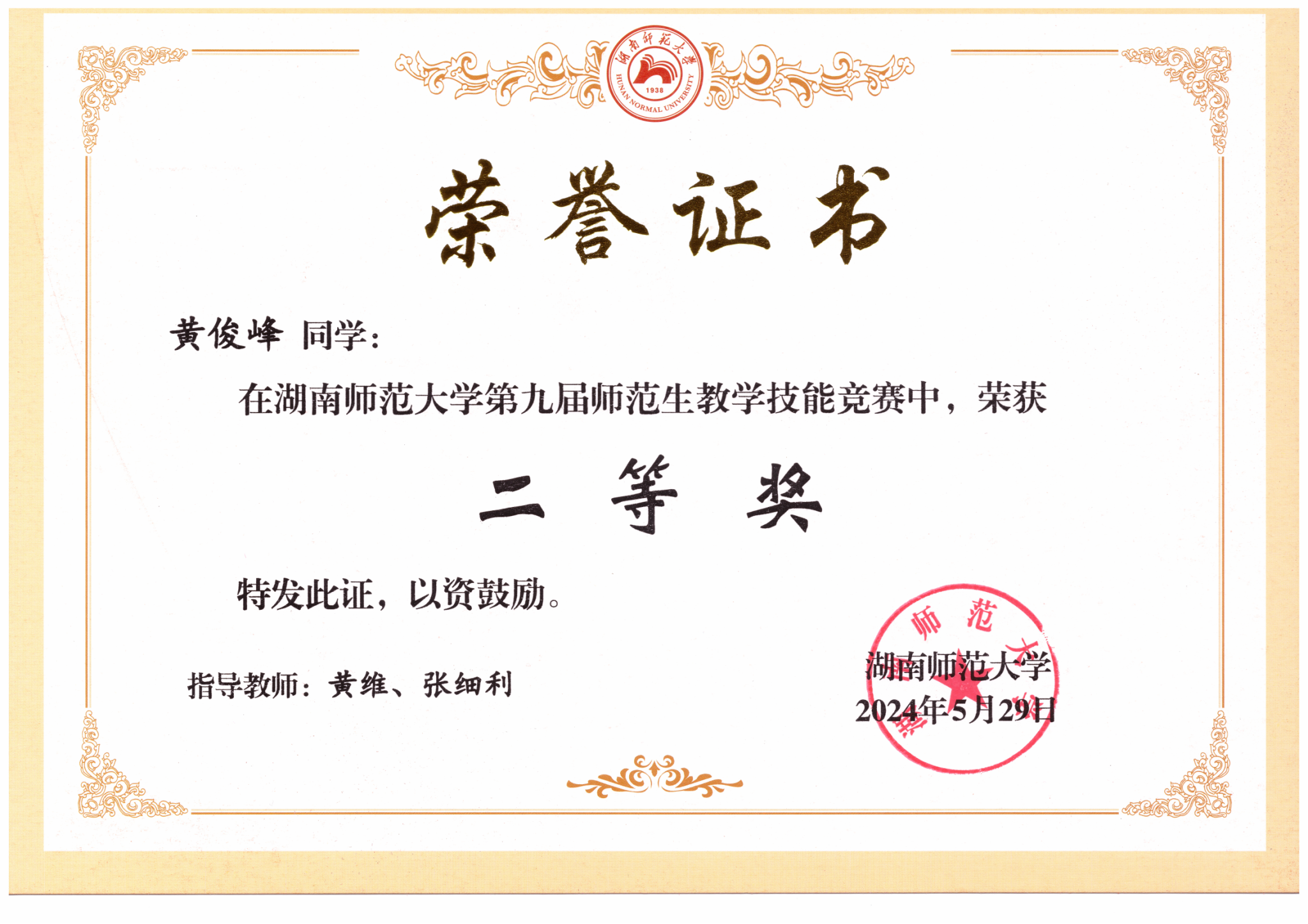 2024年诸侯ok1133第九届师范生教学技能竞赛获奖