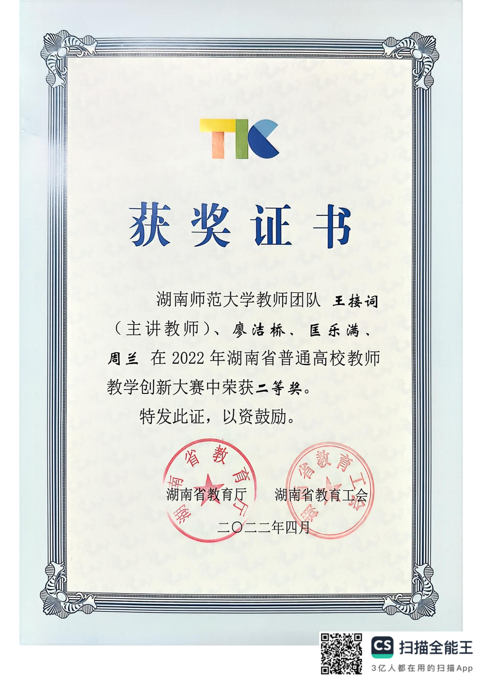 2022年湖南省普通高校教师教学创新大赛获奖