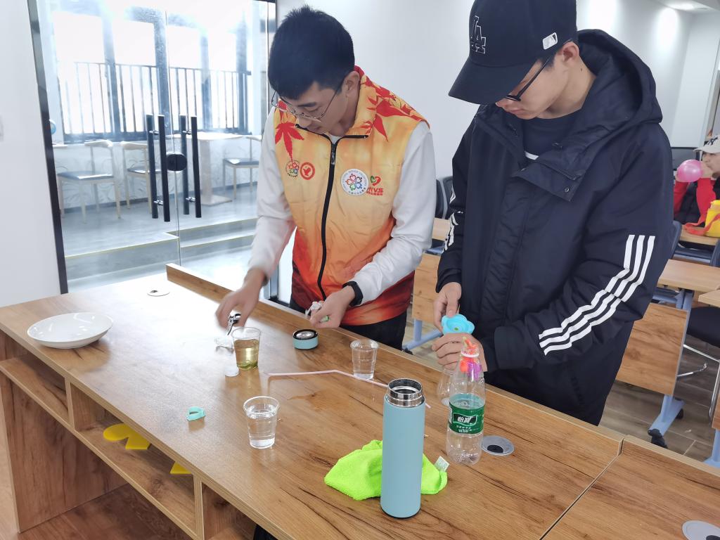 此次活动,志愿者带领小朋友们了解并体验了三个趣味科学实验,借助实验让小朋友们更加了解物理知识与原理,激发小朋友对生活中物理现象的好奇心与求知欲,同时也增强了动手与协作能力。