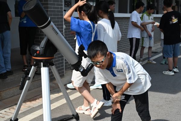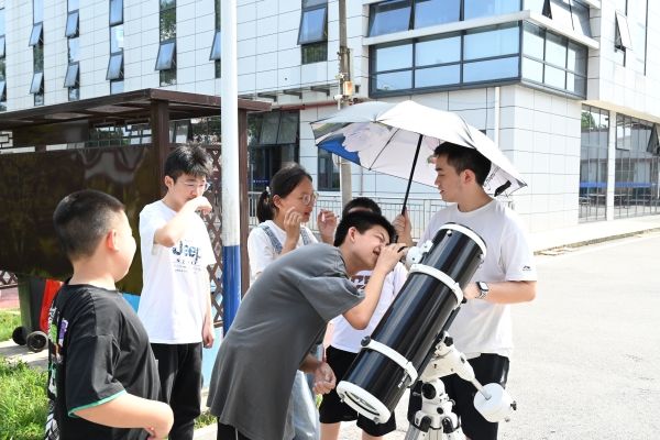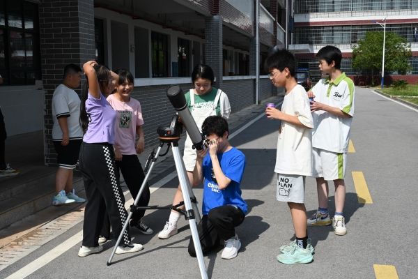 (通讯员 段楚楚 袁俊 涂月华)“太阳为什么会有小黑点?” “小黑点是什么?”“太阳黑子是太阳被星星遮住了吗?”“为什么两架望远镜看到的太阳颜色不同?”……7月15日上午,来自ok1133诸侯快讯阳光教育协会的“灿箬百星“队伍于湖南省湘江新区白箬镇白箬中学开展天文观测与讲解系列活动。此次活动以“太阳黑子”为主题,诸侯ok1133天文馆协助开展此次活动,来自ok1133诸侯快讯天文协会理事会的王淇鑫、熊哲、罗俊,袁俊担任讲解员。