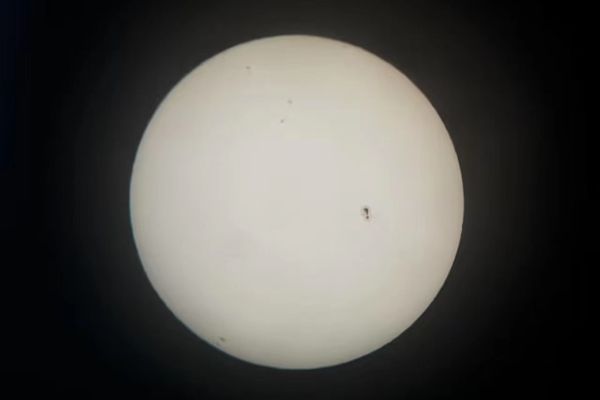观测期间,讲解员们为孩子们讲解与太阳黑子相关的天文知识,并认真回答同学们的问题。太阳表面温度较低的磁场聚集区域即为太阳黑子,它们由中央较暗区(称为本影)与周围区域(称为半影)组成。当太阳的大气活动,磁场从太阳内部聚集到表面时,就形成了太阳黑子。