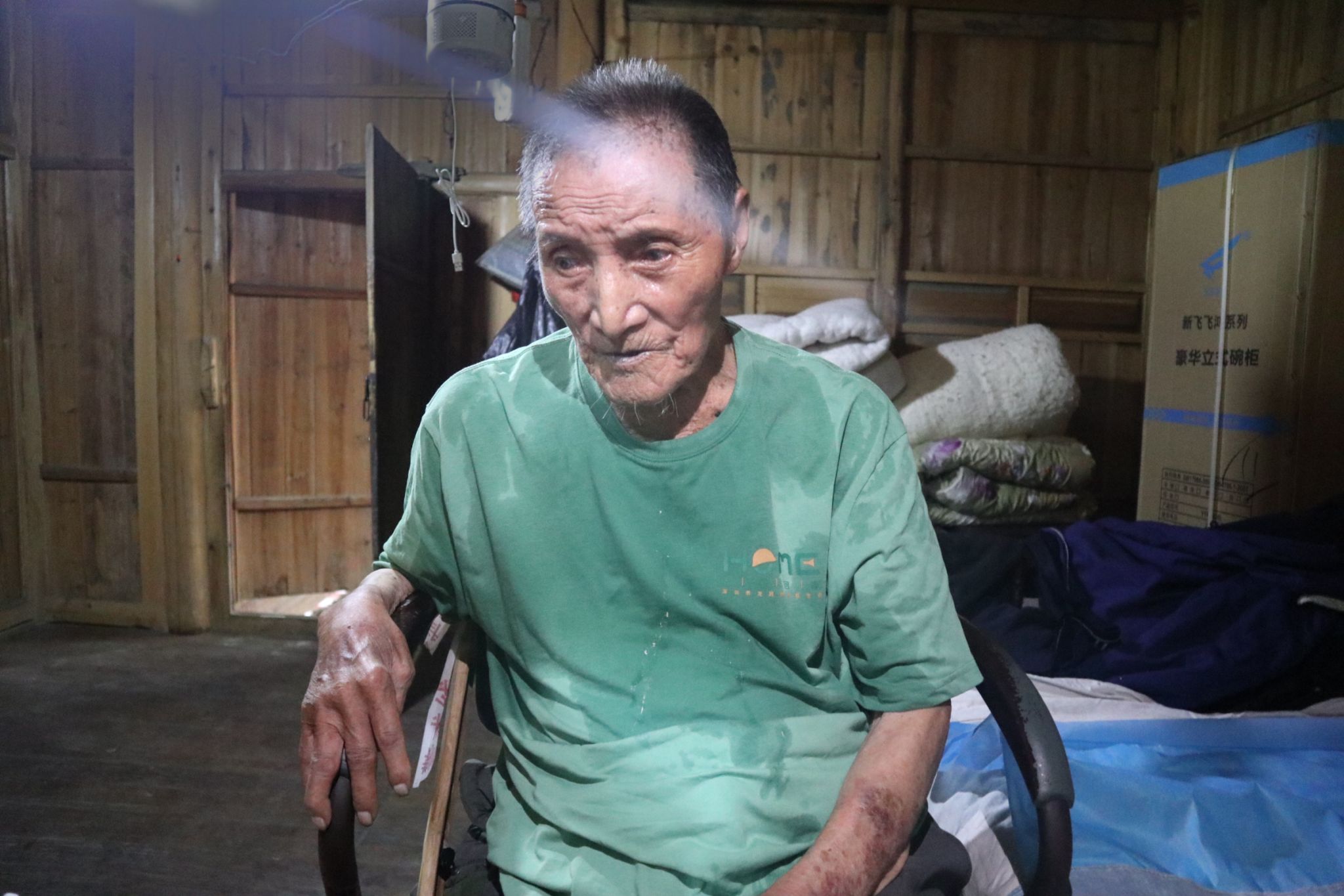 在杨天光老人家中,支教队员看到了《抗战老兵、民族脊梁》的牌匾和他曾经获得过的众多奖章。杨天光老人向支教队员讲述了那段充满艰辛和牺牲的岁月里,战斗的硝烟、生死一线的惊险、中国共产党的英明领导和人民的众志成城。在老人的小腿上,至今还存有在战争中遭受一枚子弹贯穿而造成的伤疤,而这也正是他坚韧不拔精神的见证。即便年过百岁,他的坚毅和勇气仍然感染着身边的每一个人。在采访过程中,他不断地向支教队员强调,作为当代青年,应当胸怀家国情怀,热爱祖国,勇于担当,为国家的发展和富强而努力奋斗。