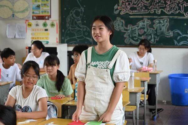 学生们积极举牌子回答问题