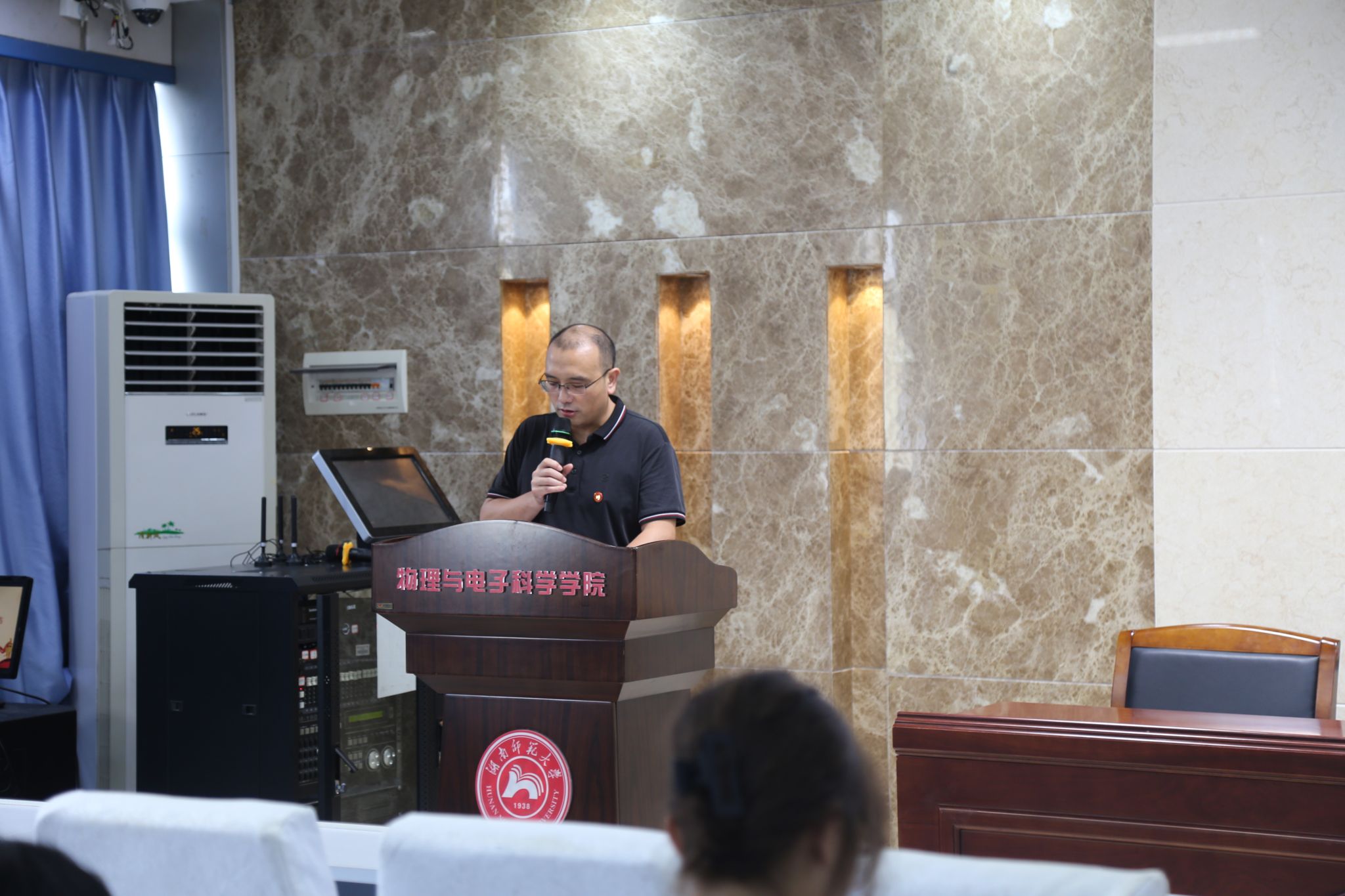 郭铭伟为会议致开幕词,他向陈天嵩的到来表示感谢,并督促在场代表要秉持公平公正的原则,认真审议大会工作报告,共创一个求真务实的大会氛围,以推动物电院团学工作更好地发展。