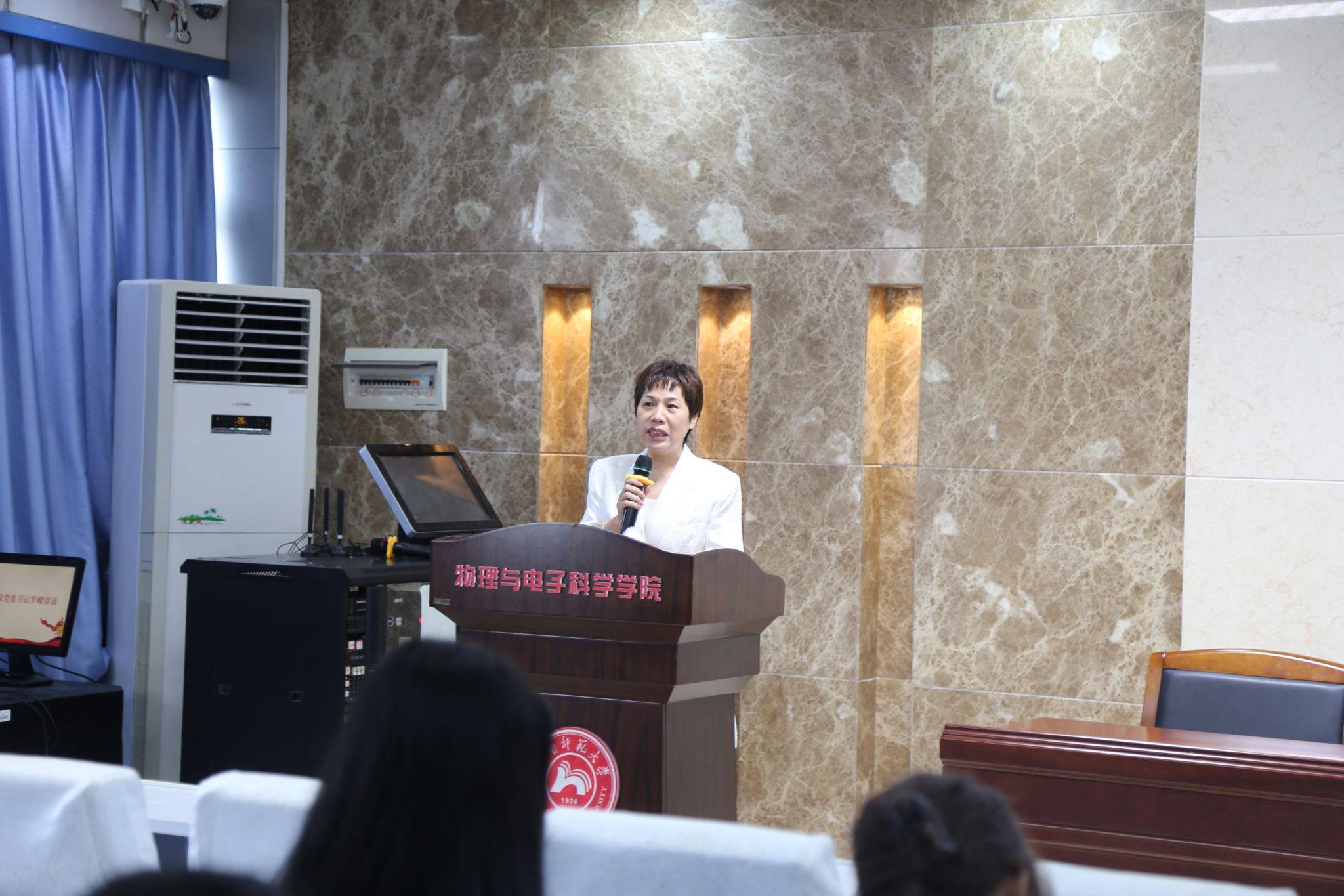 罗嵘代表学院党委向大会的顺利召开表示热烈祝贺,向陈天嵩的到来表示感谢,并向全院共青团员和广大青年学生致以亲切的问候。她表示,物电院团学工作能取得优异成绩离不开校团委的正确引导,有关部门的大力支持和我院各级团学组织凝心聚力、开拓创新,广大团员青年拼搏进取、奋发有为。她总结了具有物电特色的团学工作新方法和过去一年中取得的优异成绩。她希望学院青年要坚定信仰,胸怀国之大者;修身励德,砥砺品德修为;勤学好识,练就过硬本领。