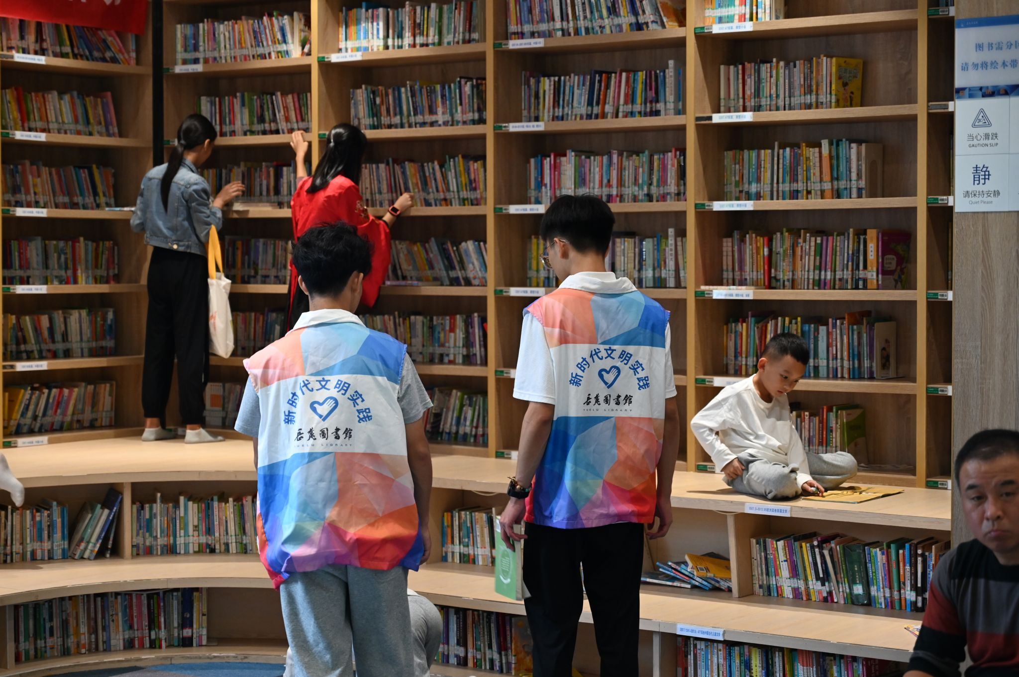 志愿者协助读者寻找图书