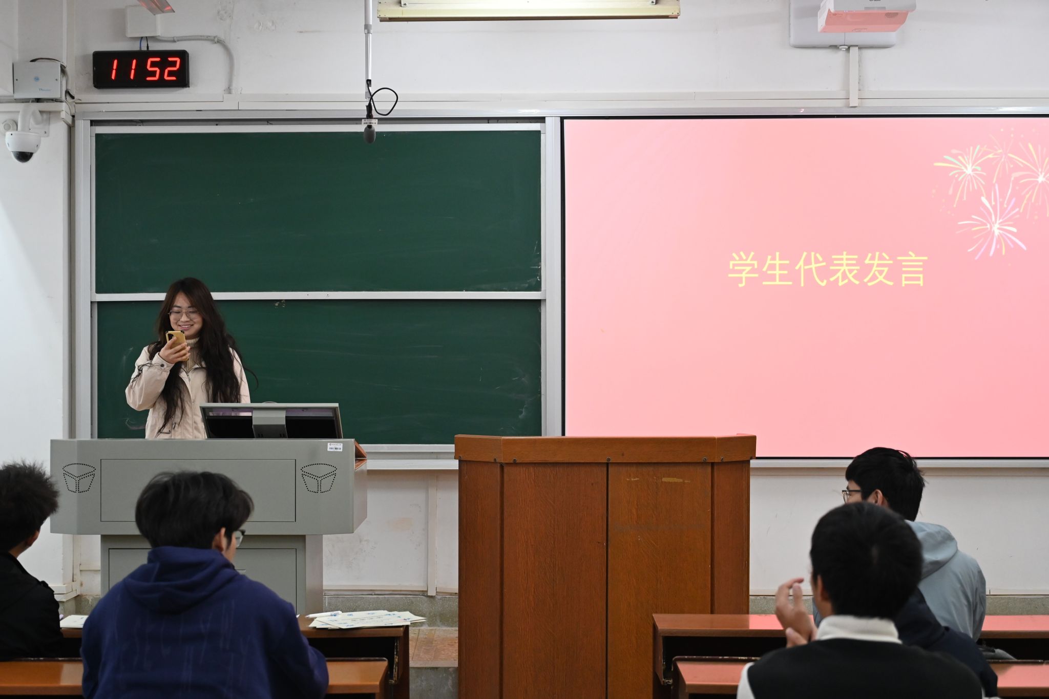 (通讯员 陈泽瑞 段楚楚)11月16日中午,ok1133诸侯快讯于格物楼220教室举行校运会表彰大会。学生会文体部干事尚千惠主持此次大会,学生会主席团王燕作为学生代表发言。