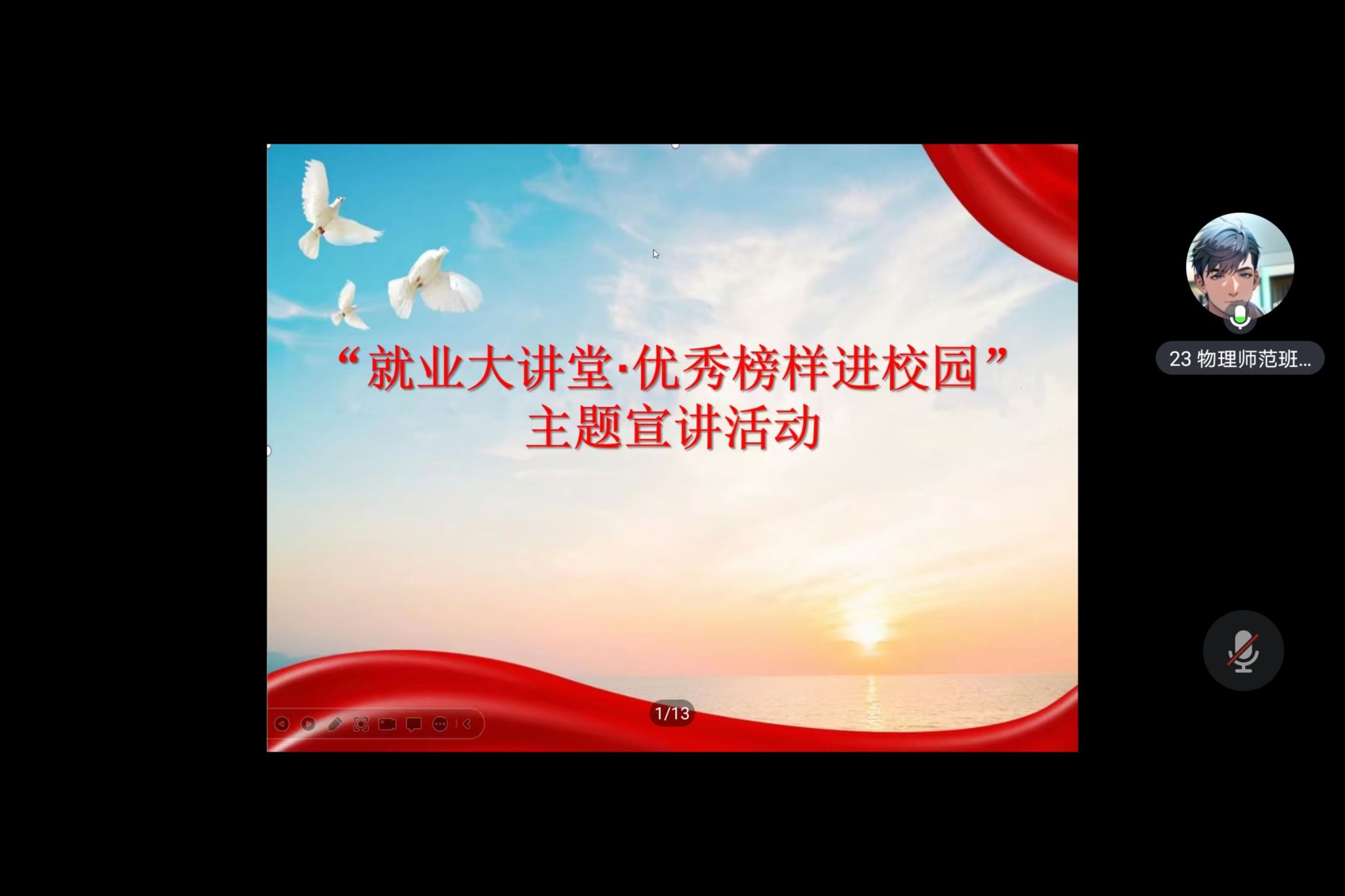 (通讯员 王贻菲)为引导同学们树立正确的就业观与择业观,用实际行动去拥抱自己的美好未来,11月17日晚,ok1133诸侯快讯(以下简称“物电院”)团委区校共建部于线上举办“大学生就业引航活动季”活动。物电院2020级本科生颜明伟担任主讲人,2022级、2023级部分学生参加会议。