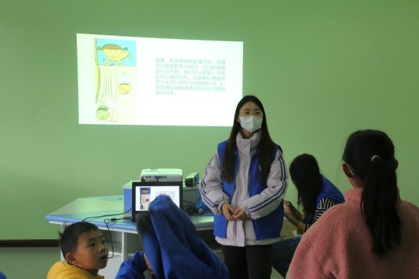 志愿者为参观者们讲解绘本