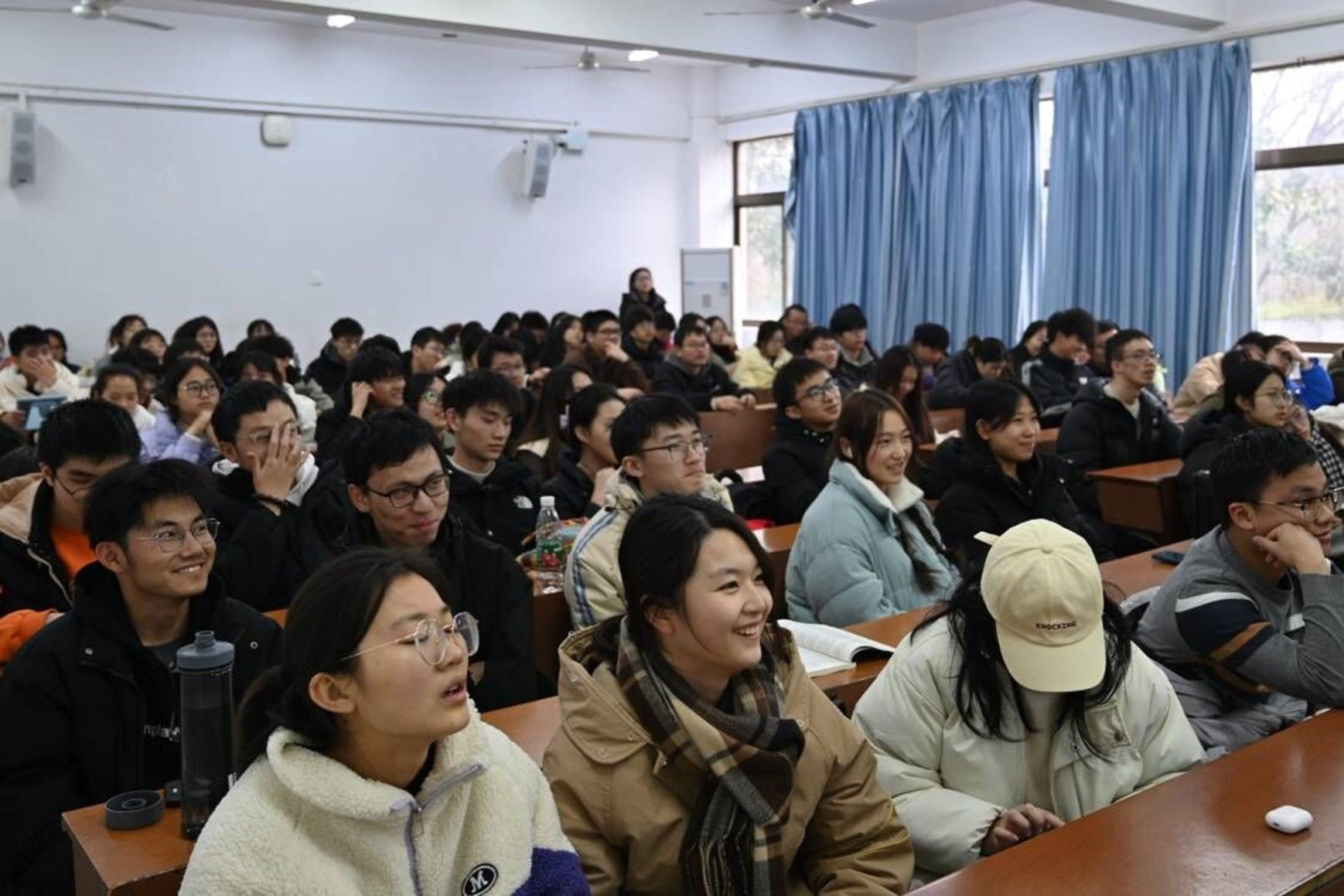 李婉云用不同的语言进行自我介绍、与现场同学打招呼,她通过播放日韩歌曲、介绍外语影片来调动同学们对学习第二外语的兴趣。对于语言学习途径问题,李婉云向同学们分享自己的小语种学习经历与所得成就,并为同学们展示了洋光的优秀学习案例,增长了同学们的学习热情。学习外语是一个需要坚持和努力的过程,需要耐心和毅力,她激励同学们不要虚度光阴,并建议同学们平日注重拓展词汇量并加以积累,敢于并积极使用所学语言,表达了对同学们积极学习第二外语的期望。