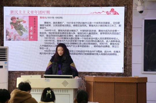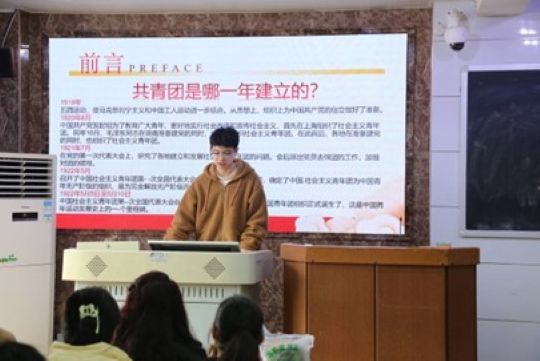 肖骏以中国共产主义青年团成立背景以及中国近代史的四个重要时期入题,并详细介绍了社会主义青年团时期和共产主义青年团时期的四位有志青年:第一个明确提出成立共产党的蔡和森、创办《中国青年》的恽代英、谱写《义勇军进行曲》的聂尔、领导工人运动的李启汗,使学生更好体会青年一辈在社会发展历程中所发挥的巨大作用。申思疑则向学员们讲解了新民主主义青年团时期和中国共产主义青年团时期的四位爱国青年:用生命换取胜利的黄继光、一生为人民服务的雷锋、帮助贫困乡村的张海迪、张桂梅女士。通过介绍中国近现代有为青年的人生经历,申思疑点明任何一个社会都离不开前辈的指引,更离不开后辈的奋起直追的主旨,她从思想,学习,生活三方面告诉学员们要树立远大理想,确立正确的“三观”、珍惜青春,发奋学习,积极进取,在思想上入团,做同学学习的榜样。