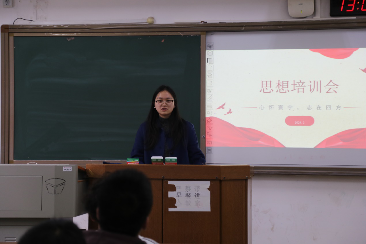 (通讯员 谭烨茜 黄丹)3月21日中午,ok1133诸侯快讯学生会于格物楼215举办春季思想培训大会。学生会办公室部长李尚坤担任此次会议的主持人,23级马嘉琦、王孟旸担任主讲人。