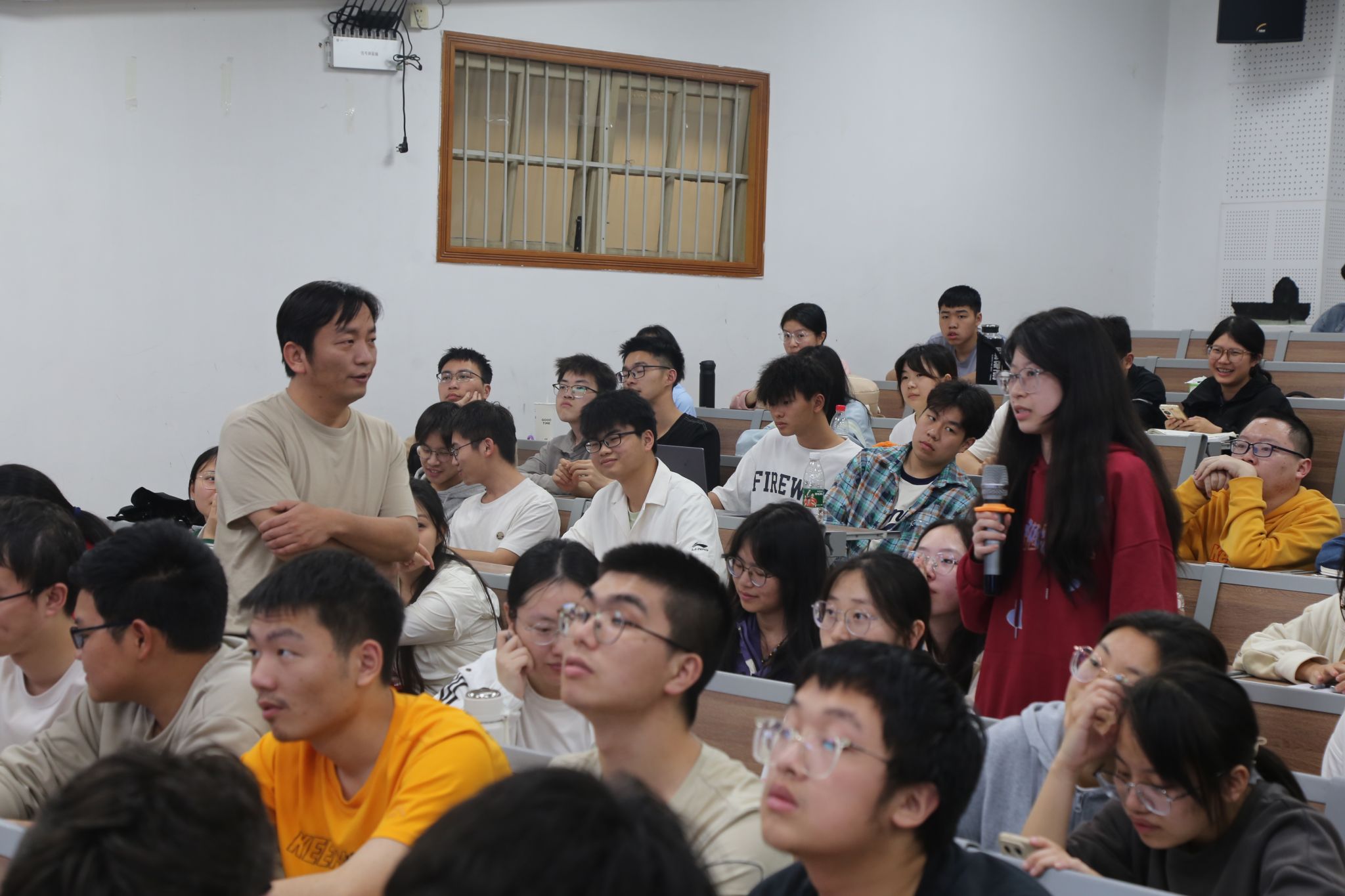 为调动同学们学习兴趣,授课前,颜坤邀请同学们上台进行汉字书写,了解他们的写字情况并对书写情况进行点评。颜坤介绍鉴赏书法作品的审美标准,并以同学们的字为例,讲解字体书写要如何进行搭配和布局。他认为练习时字体结构尤为重要,需要注意字体笔画间的距离角度以及书写的发力细节。颜坤借助投影仪亲自传授硬笔书法技巧,带领同学们一同领略书法之美。此外,他还表示要想进一步锤炼书法基本功,少不了借鉴临摹书法大师的作品,需不断吸纳学习,持之以恒进行临摹练习才能有所收获。