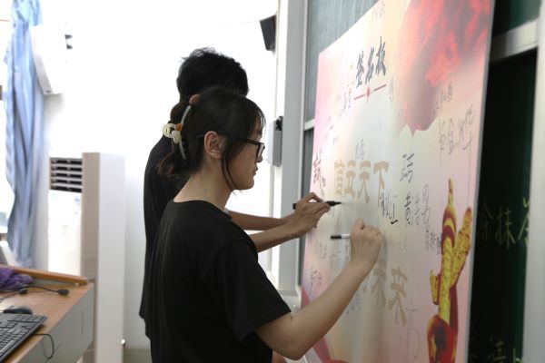 竞赛以笔试的方式进行,共七名选手参加。竞赛题型包括单项选择题、不定项选择题和判断题,题目不仅考察选手对于诚实守信意识的理解,还检测选手们是否了解贷款等情景中的征信规则。沈蓉和彭雅瑜为选手发放试卷并简单强调考试纪律。选手们在二十分钟内独立思考,认真作答,完成所有试题。赛程结束后,沈蓉和彭雅瑜邀请选手们在写有“信立天下,诚铸未来”的签名板上签名并合影留念。