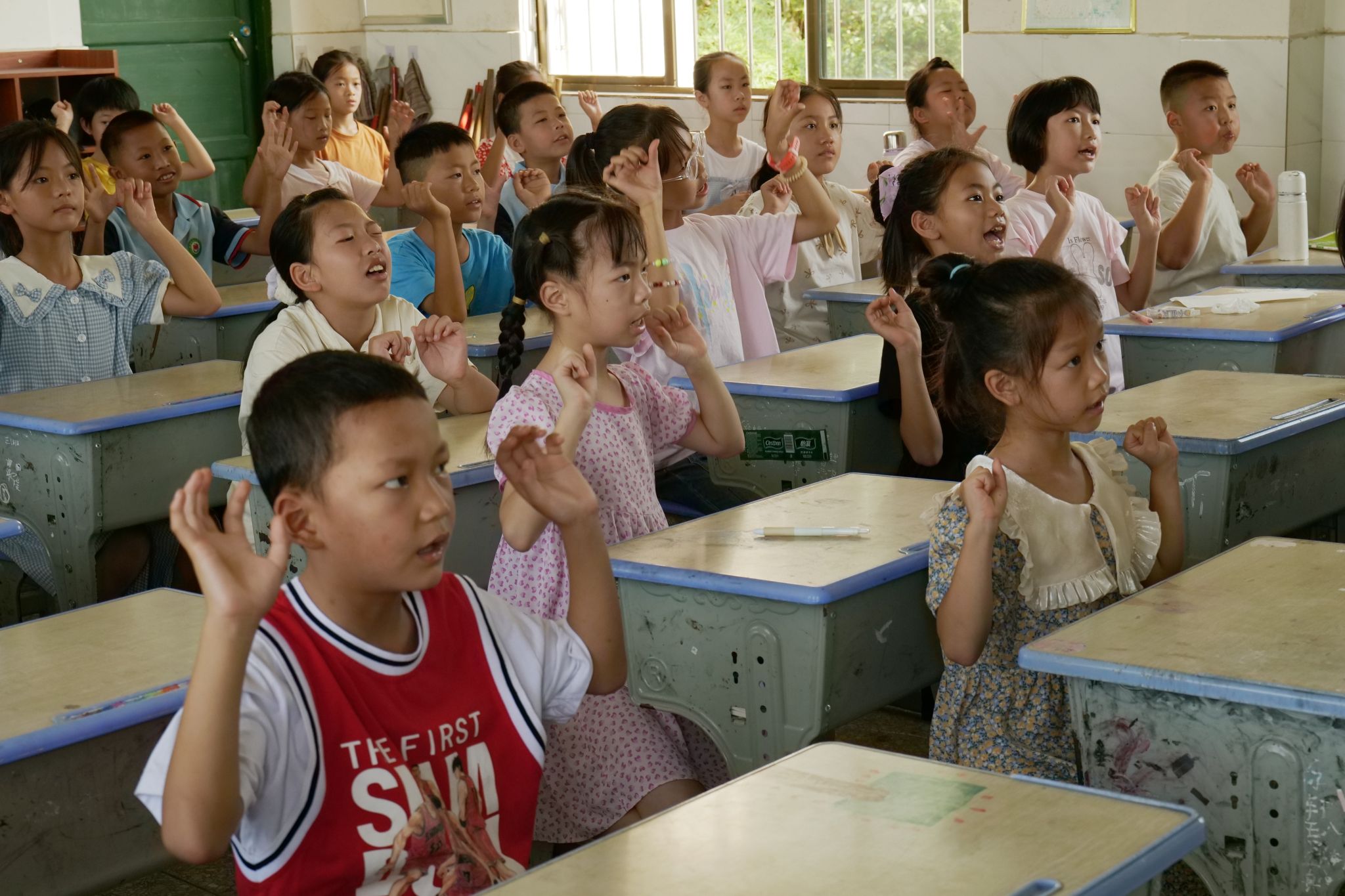为提高学生的反应力、节奏感,培养学生创造力,支教队队员周怡含带领四年级学生一起学习了手势舞。课堂上,学生们跟着周怡含模仿视频画面中的系列动作,在集体学习后,依次上台展示所学成果。周怡含表示,将手势舞运用到教学的课堂中,不仅可以带动课堂,提升课堂氛围,同时也能够更好的促进学生身心发展,提升记忆力与想象力。