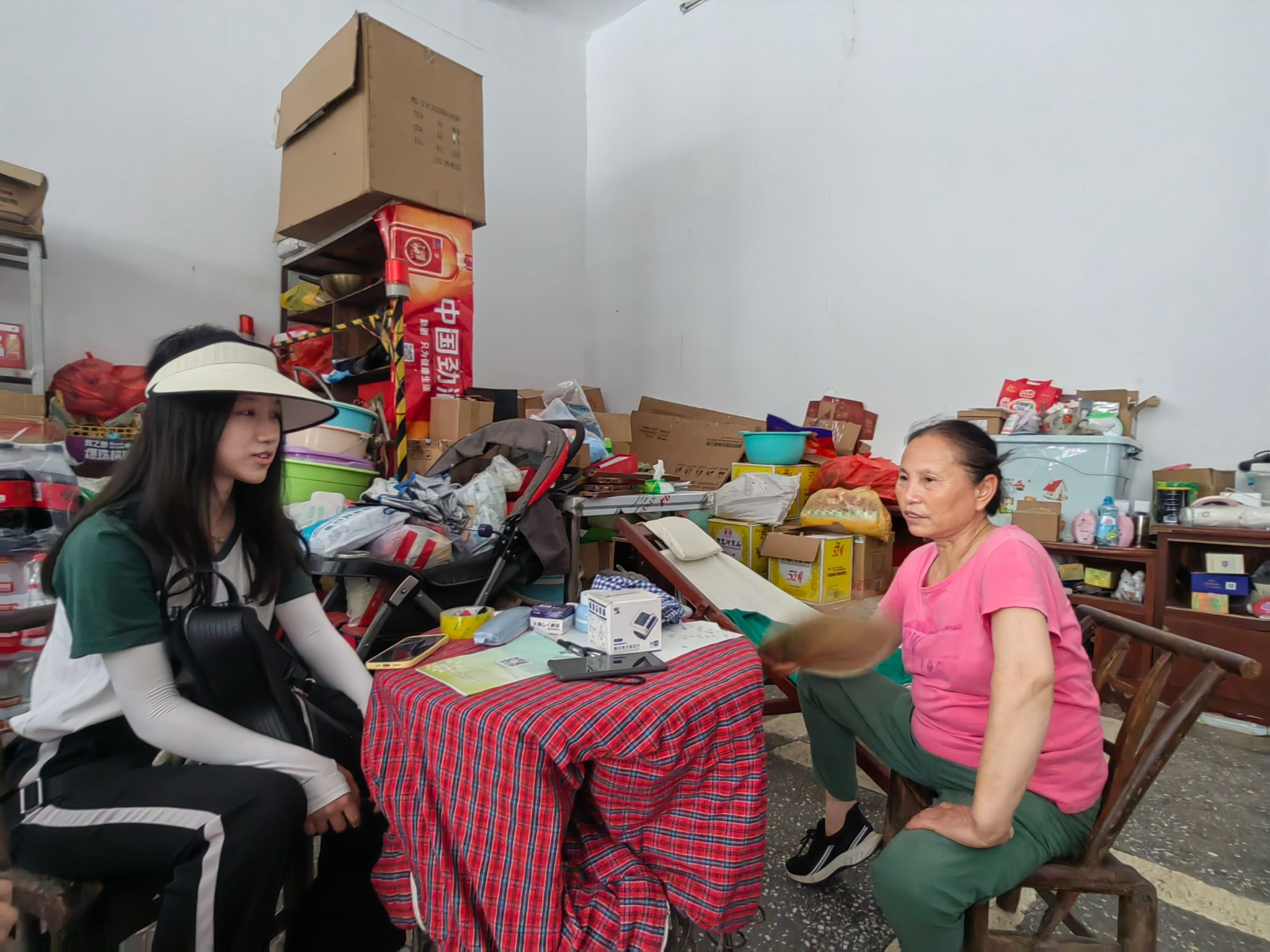 调研组成员同镇上店铺经营者进行交流