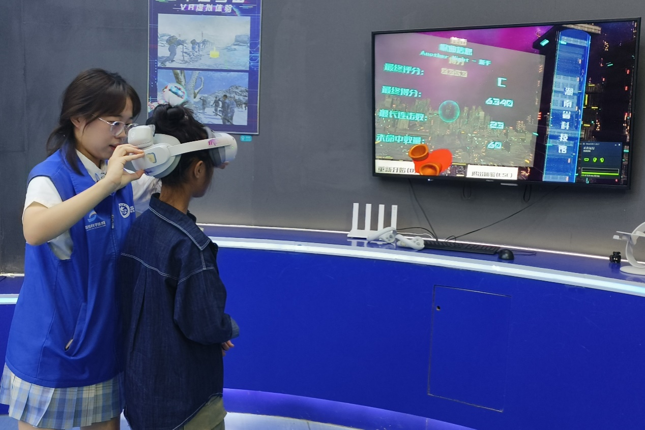 志愿者为小朋友佩戴VR眼镜