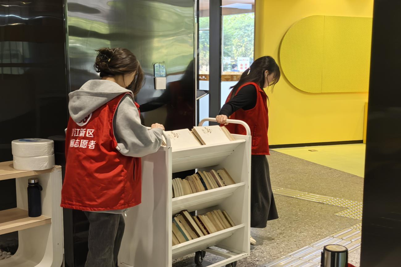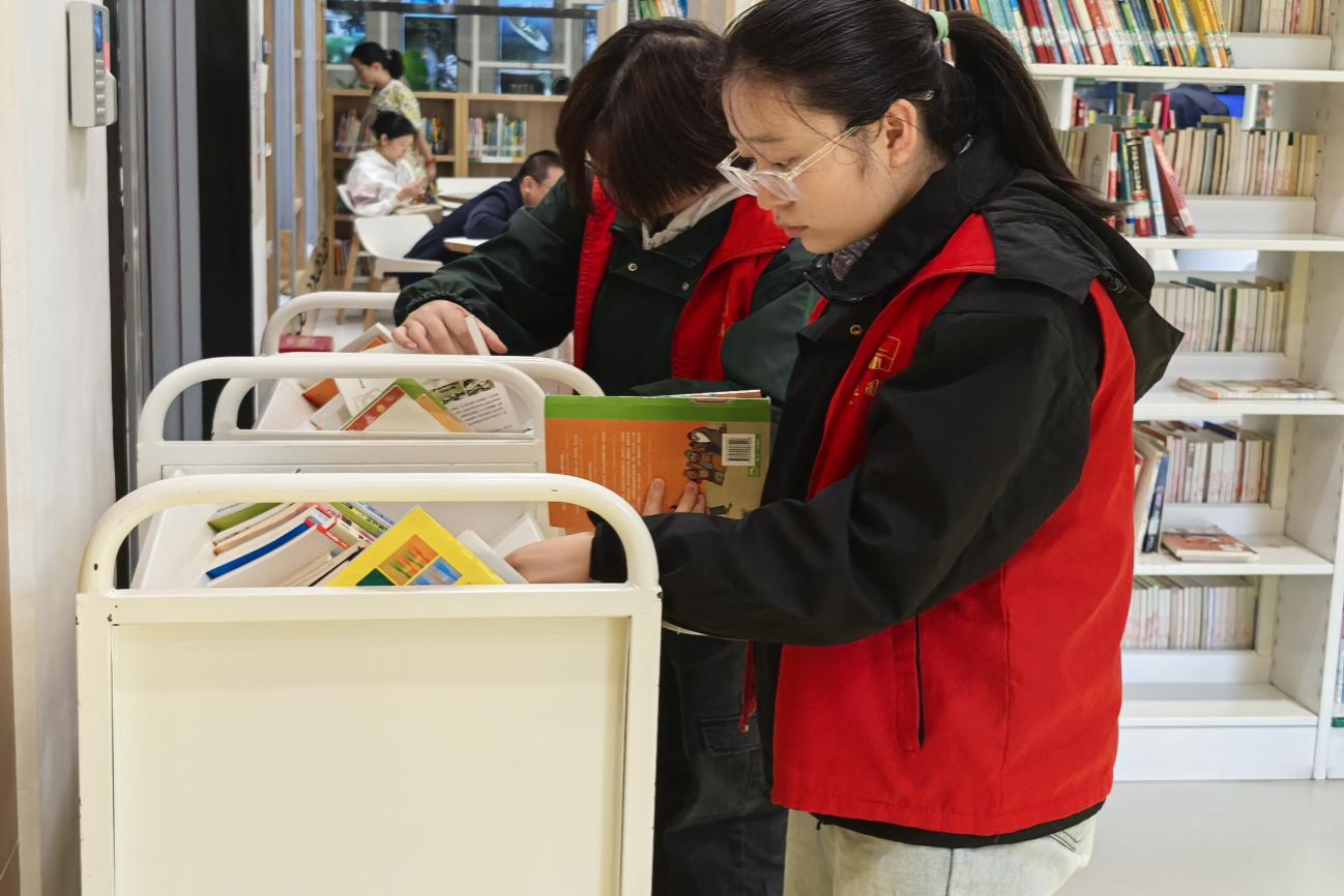志愿者将书籍分类归位