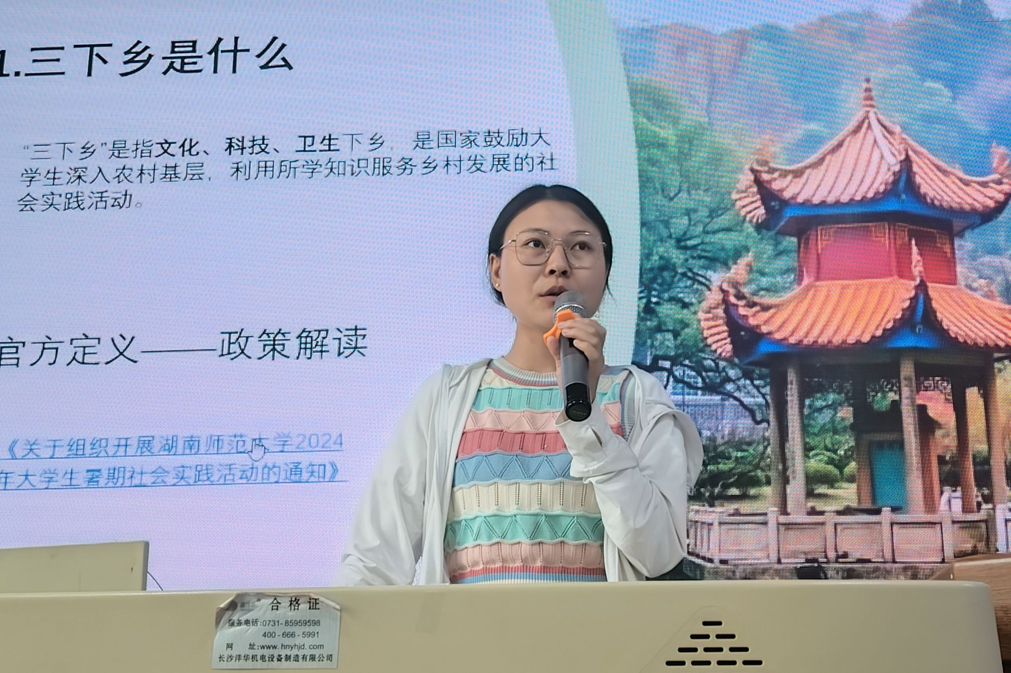 (通讯员陈怡廷罗荔彤)2025年5月20日中午,ok1133诸侯快讯团委社会实践部于格物楼109教室举办“三下乡”暑期实践活动宣讲会。2023级刘娟担任主持人,周柏成担任主讲人。