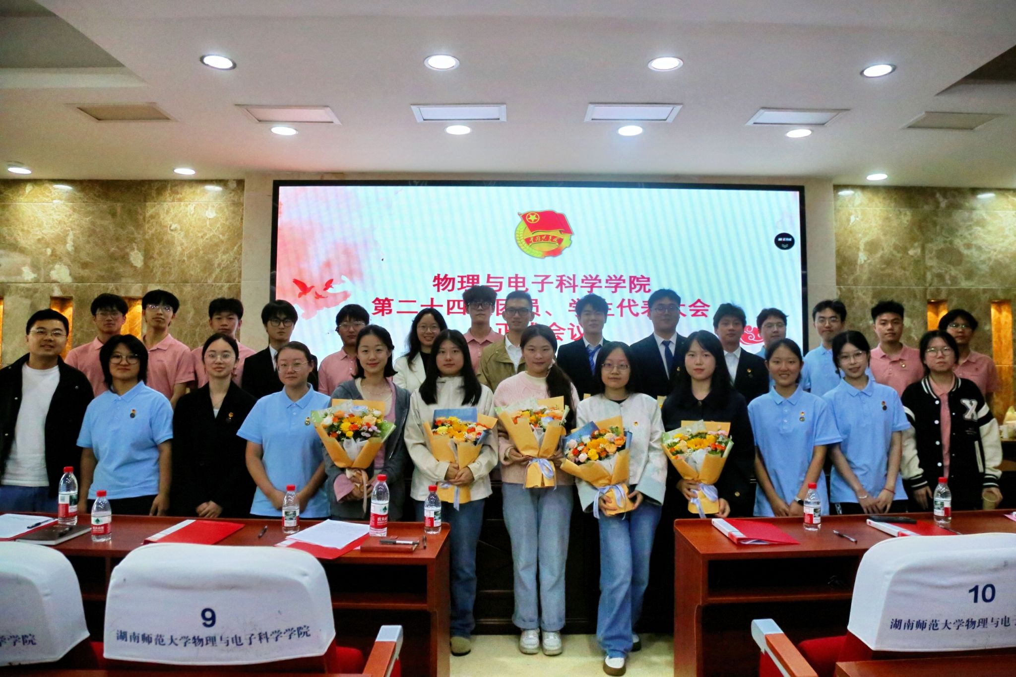 胡滢代表校团委对关心支持学校共青团工作的物电学院表示感谢。她指出,物电学院团学系统立足自身优势,在团学工作方面和创新创业领域取得了突出成果,引用毛泽东同志话语,提出三点希望,即筑牢理想信念、坚持接续奋斗、勇于开拓创新,鼓励物电学子提升核心竞争力。