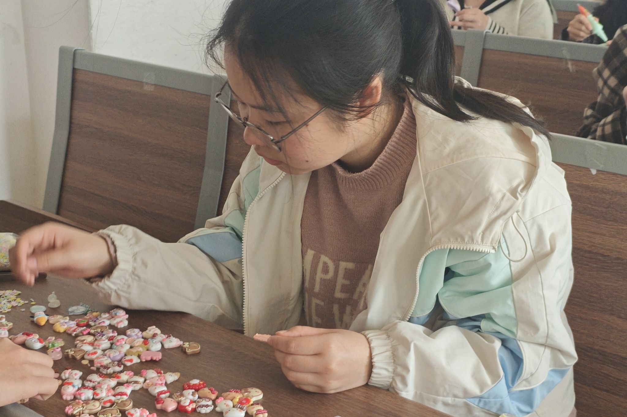 “手工DIY发夹”环节则鼓励同学们发挥创意,利用现场提供的发夹、装饰配件等材料,设计制作独具个性的手工作品。参与者可独立完成或组队合作,现场氛围轻松愉快。活动不仅锻炼了同学们的动手能力,也增强了团队协作意识。
