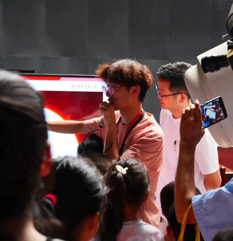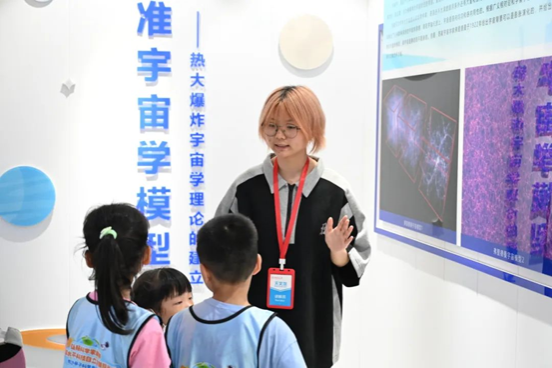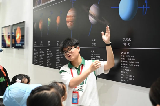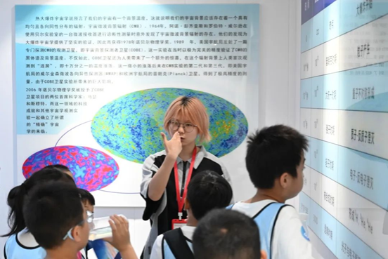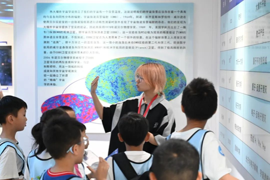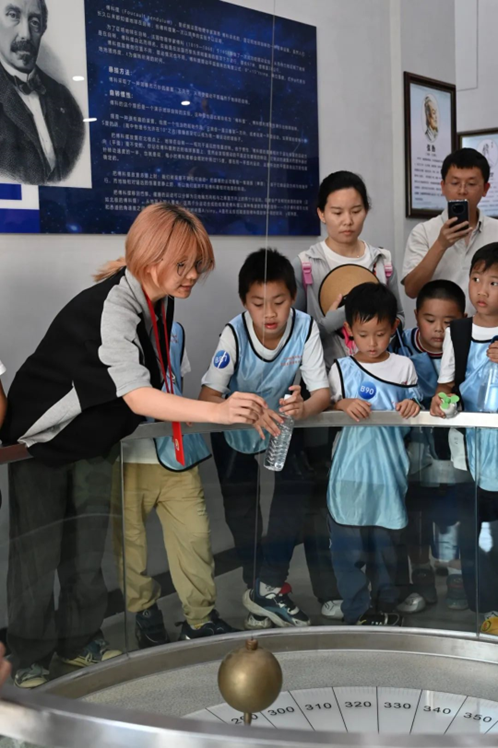 来到七楼,讲解员通过讲解傅科摆原理引入地球自转话题,讲解了宇宙大爆炸、弗里德曼三大模型、宇宙物质形成及暗物质暗能量等天文学相关知识。给参观者们带来了精准专业却又通俗易懂的描述和解答,激发了他们对浩瀚宇宙的好奇和对科学世界的探索。