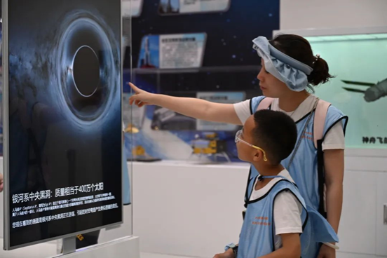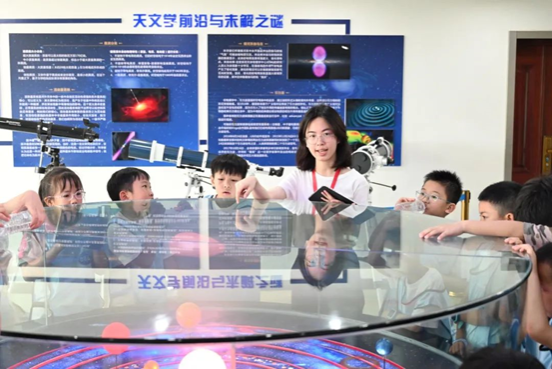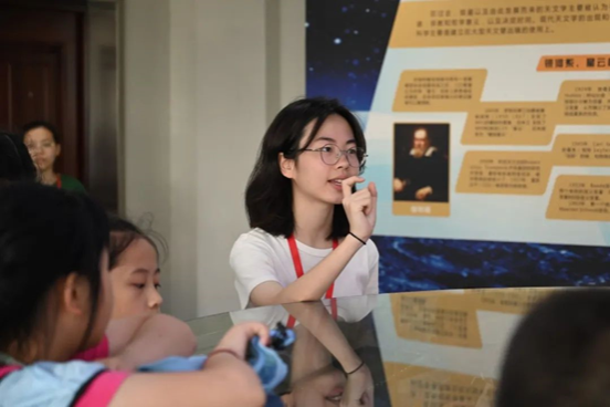 在志愿者们的带领下,参观者们先进入六楼展览厅听讲解员介绍相关板块知识。讲解员从基本的天文知识切入,由浅入深地讲解了恒星演化、黑洞形成、西方八十八星座等天文知识,并详细介绍了中国古代天文学发展史。