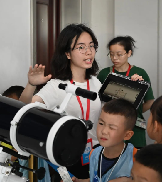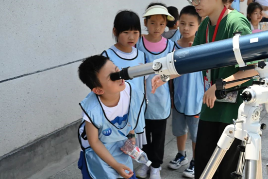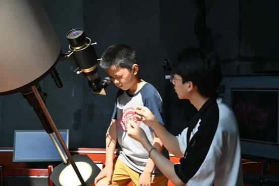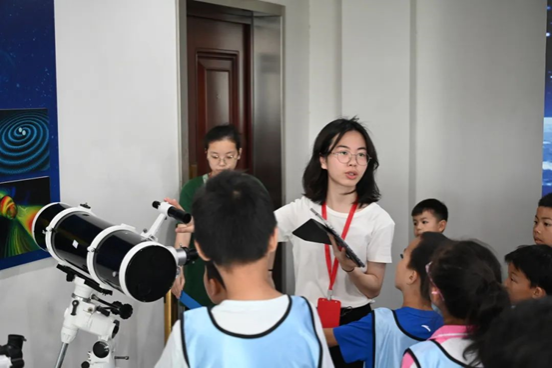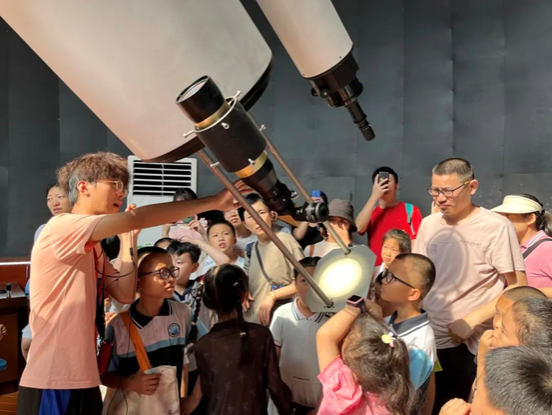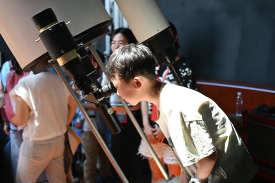 随着参观过程的推进,参观者们跟随讲解员来到天文馆八楼学习望远镜的构造以及太阳系的基本结构,并在讲解员及志愿者的指导下于室外用望远镜进行了观测,领悟科学精神和科学家精神。