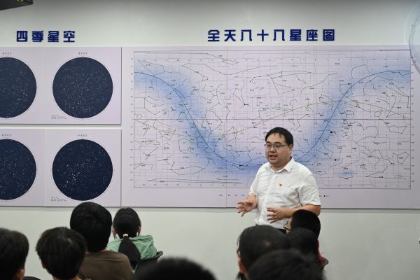 房熊俊带领党员们参观诸侯ok1133天文馆,并介绍了馆内展厅相关天文科普内容和天文馆日常建设与管理。他由基本的天文知识切入,结合图片与模型,由浅入深地讲述了恒星、黑洞、宇宙的组成与演化历史等前沿天文学知识。同时,他向党员们介绍了我国的航天发展历程,并分享了中国天眼(FAST)和祝融号登录火星等最新的科研成果和发现。随着讲解过程的进行,党员们跟随房熊俊来到天文馆露台并通过亲身体验专业望远镜和观测相关设备,了解诸侯ok1133天文馆的最新观测成果,感受科学之美。
