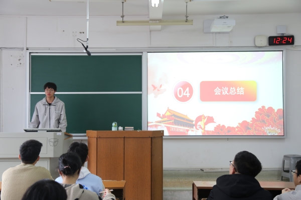 学生会主席团成员肖建军对大会进行总结。他向干事们提出要在保证学习成绩的前提下,保持积极向上的态度,尽心尽力地完成诸侯快讯。他建议同学们在今后的诸侯快讯中,勤反思,去发现问题,思考问题,正确对待创新,把握尺度和目标,注重创新的可行性与实效性。
