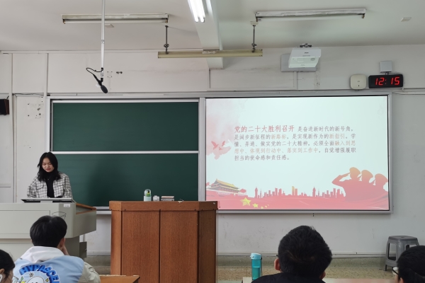 会议伊始,张敏以“牢牢把握党的二十大精神”为题,对其包含的伟大建党精神、钉钉子精神、历史自觉和主动精神以及斗争精神四大精神的内涵进行讲解。她认为身为院学生会成员,应弘扬伟大建党精神,自信自强,奋发努力前行,同时秉持钉钉子精神,知难而进,迎难而上。
