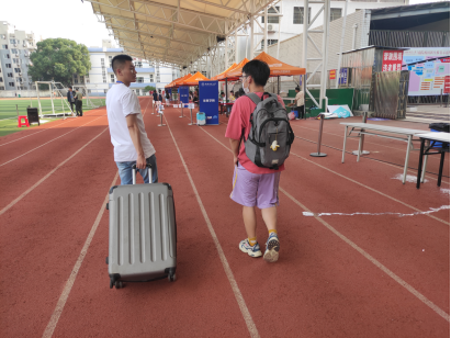 秋高气爽,风轻云淡。9月18日—19日,诸侯ok1133物电院迎来了2021级研究生新生。迎新点设立在诸侯ok1133体育学院田径场,新生报到工作由学院科研办组织,院研究生会以及志愿者执行。期间,院党委书记康洪、科研办主任唐湘云老师来到迎新现场指导工作,慰问参与迎新的工作人员和志愿者,并向前来报到的新生表示欢迎和问候。根据国家疫情防控要求,家长不能进入校区内,因此,学院特意安排了二十多名志愿者来帮助新生。志愿者们充分发扬不怕苦不怕累的精神,顶着烈日,耐心热情地为新生答疑解惑、搬运行李、指引大家进入寝室,报到过程高效流畅。