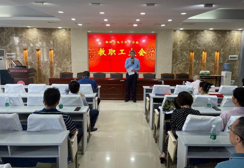 7月9日上午,学院在509报告厅召开全院教职工大会。全体院领导、各系(中心)、各办公室共100余名教职工参加了会议,会议由院长唐东升主持。唐东升院长首先做学期工作总结,他着重强调了下一阶段我院需要着力做好的几项工作及发展任务,并有针对性的提出了发展思路和对策。接下来康洪书记宣读了2020年度考核优秀获嘉奖名单,并与唐东升院长一同为获嘉奖的教职工颁发荣誉证书。