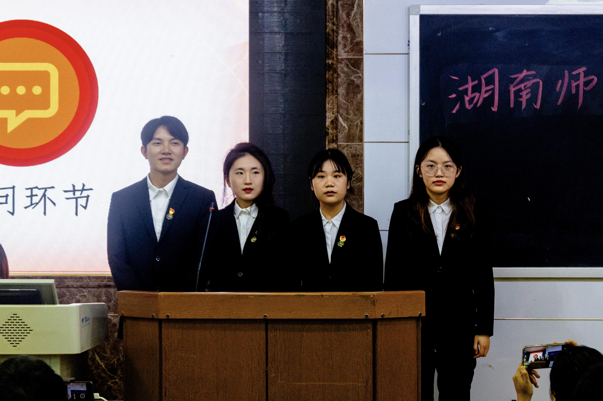 四位主讲人围绕活动主题分享自己的经历与感受。王淇鑫围绕新时代青年思想政治教育的现状和对策进行了深入探讨,形象解读了团十九大报告中关于“大力加强青年思想政治引领”主题的内容。李睿坤用习近平总书记在团十九大中的发言引出“巩固和扩大青年爱国统一战线”的主题,并阐述新时代“教育三问”和“四个立志”是开展青年思想政治引领的根本问题和具体要求。戴珑慧以“新时代中国青年的使命担当”作为主题,从新时代青年要自信自强,担当奋斗,团结一心,开放包容四个方面进行发言。围绕“汇聚起构建人类命运共同体的青春力量”的主题,黄雨欣结合自己的实践经验,强调只有学习好、宣传好、贯彻好人类命运共同体理念,才能更好履行党赋予的职责使命。