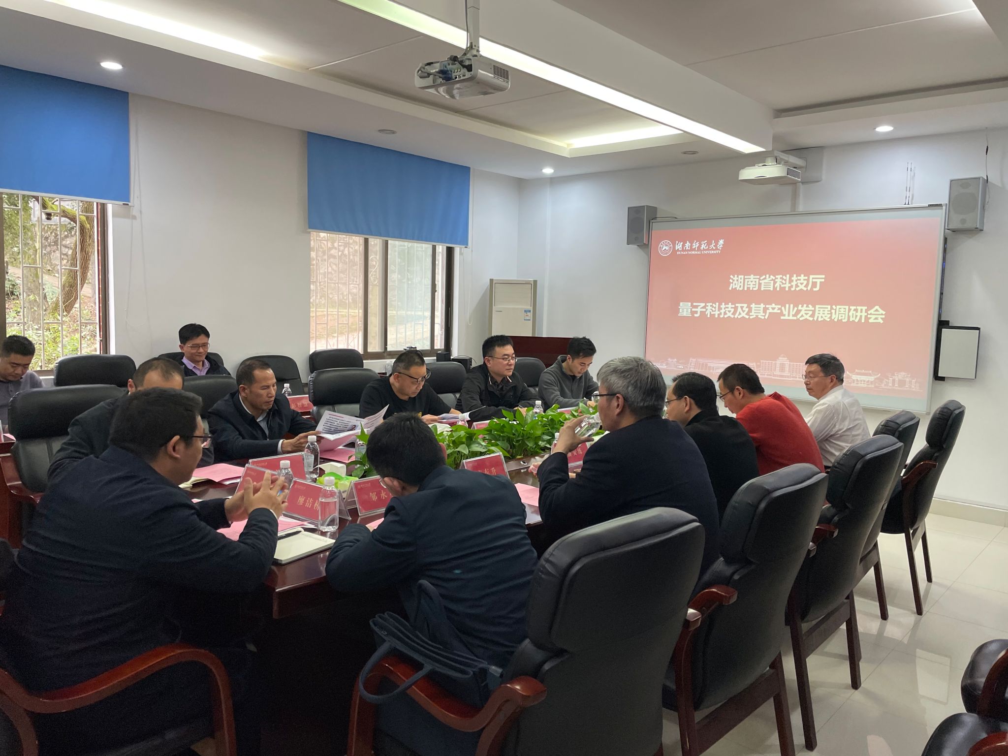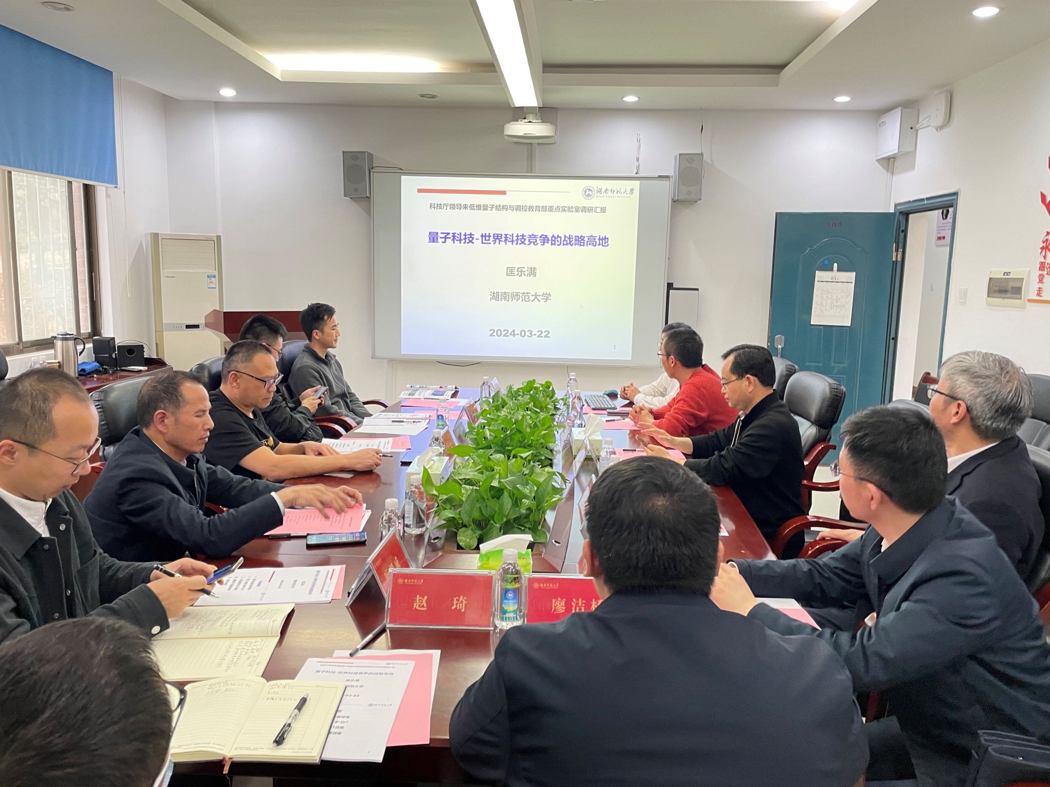 3月22日下午,湖南省科技厅前沿技术处处长王先民一行莅临我院开展量子科技及其产业发展调研。我校副校长潘安练、科技处处长唐东升、副处长邹永星等出席会议,会议由学院副院长廖洁桥主持。