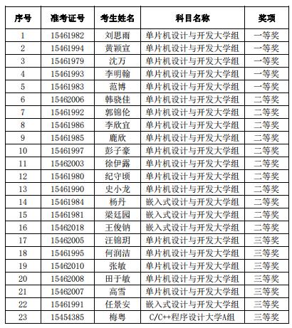 近日,蓝桥杯大赛组委会公布了第十五届蓝桥杯大赛个人赛省赛获奖名单,我院电子系邹孝、郑之伟、刘小年等老师积极组织学生参加赛事中的单片机设计与开发、嵌入式设计与开发和C/C++程序设计等多个科目,共获得湖南省一等奖5项、二等奖11项、三等奖7项,参赛人数和获奖数量都创历史新高。获得一等奖的5位同学将于2024年6月1日继续参加国家总决赛。