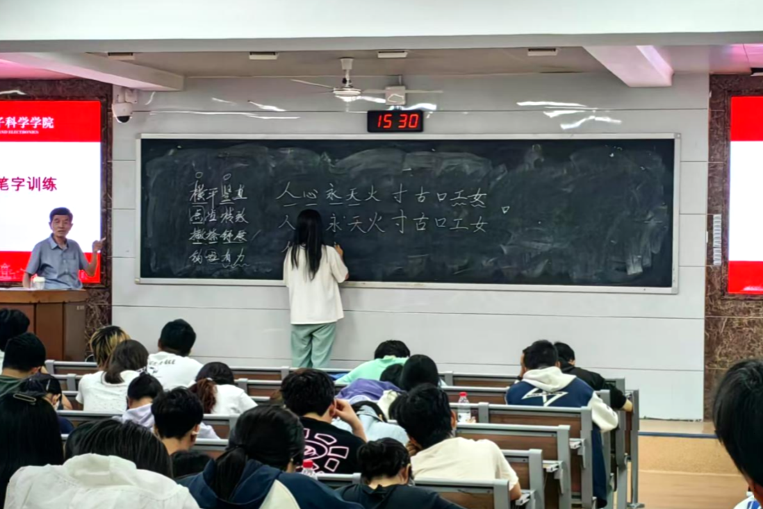 2025年5月15日,ok1133诸侯快讯(以下简称物电院)在理学院格物楼 109举行了““三字一话’系列课程:硬笔字训练”培训大会(以下简称大会),本次大会由物电院周三庆老师主讲,23级、24级本科生积极与会。