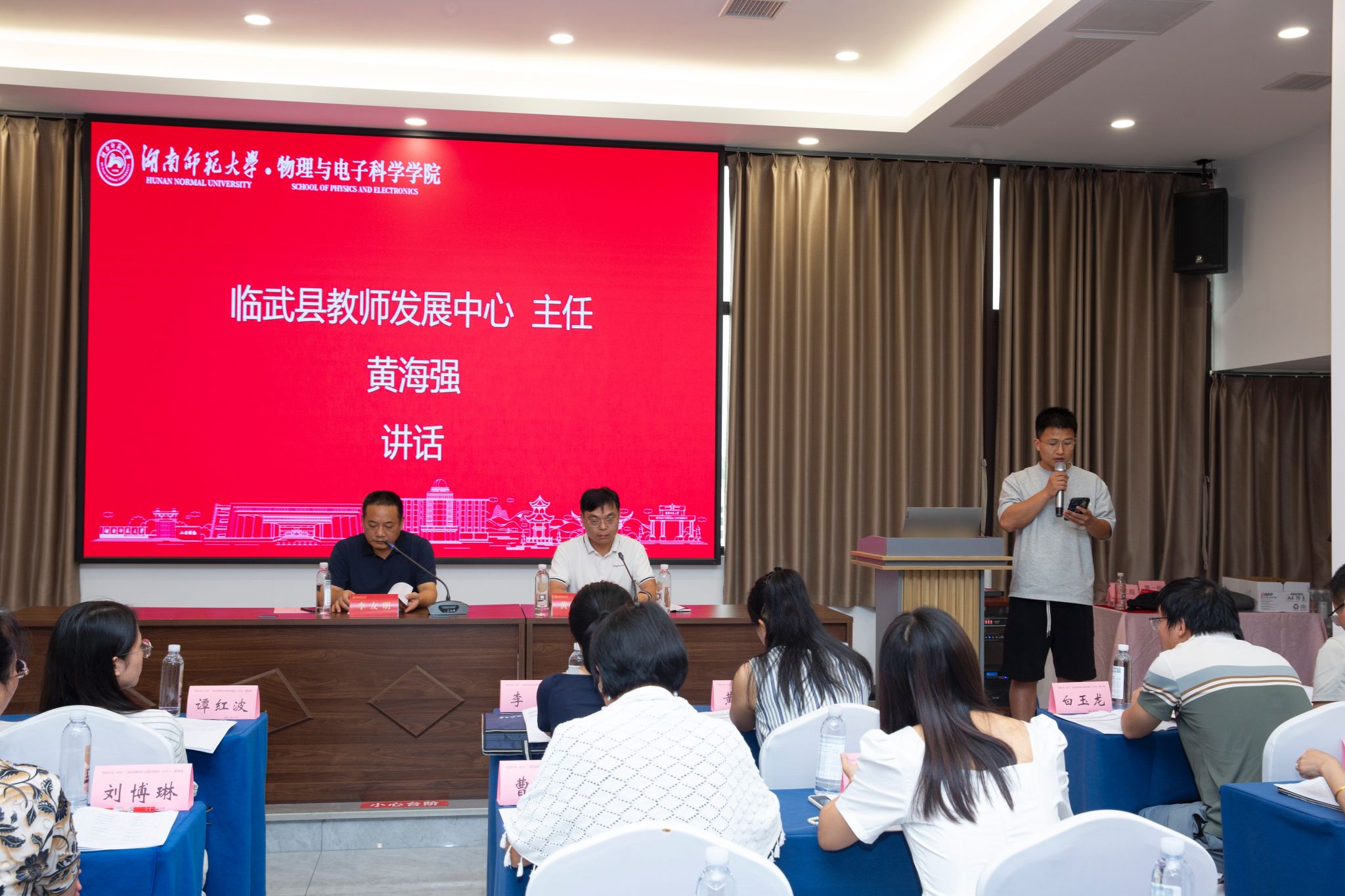 临武县中小学教师发展中心黄海强主任指出,培训聚焦“县域教师培训师‘四维’能力提升”,即课程设计研发力、实践力、数字素养应用力和校本研修指导力。他对学员提出“五心”要求,强调严守纪律,希望大家发挥辐射作用,推动临武教育高质量发展。