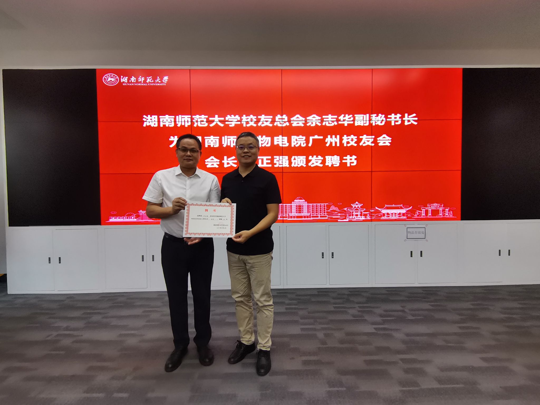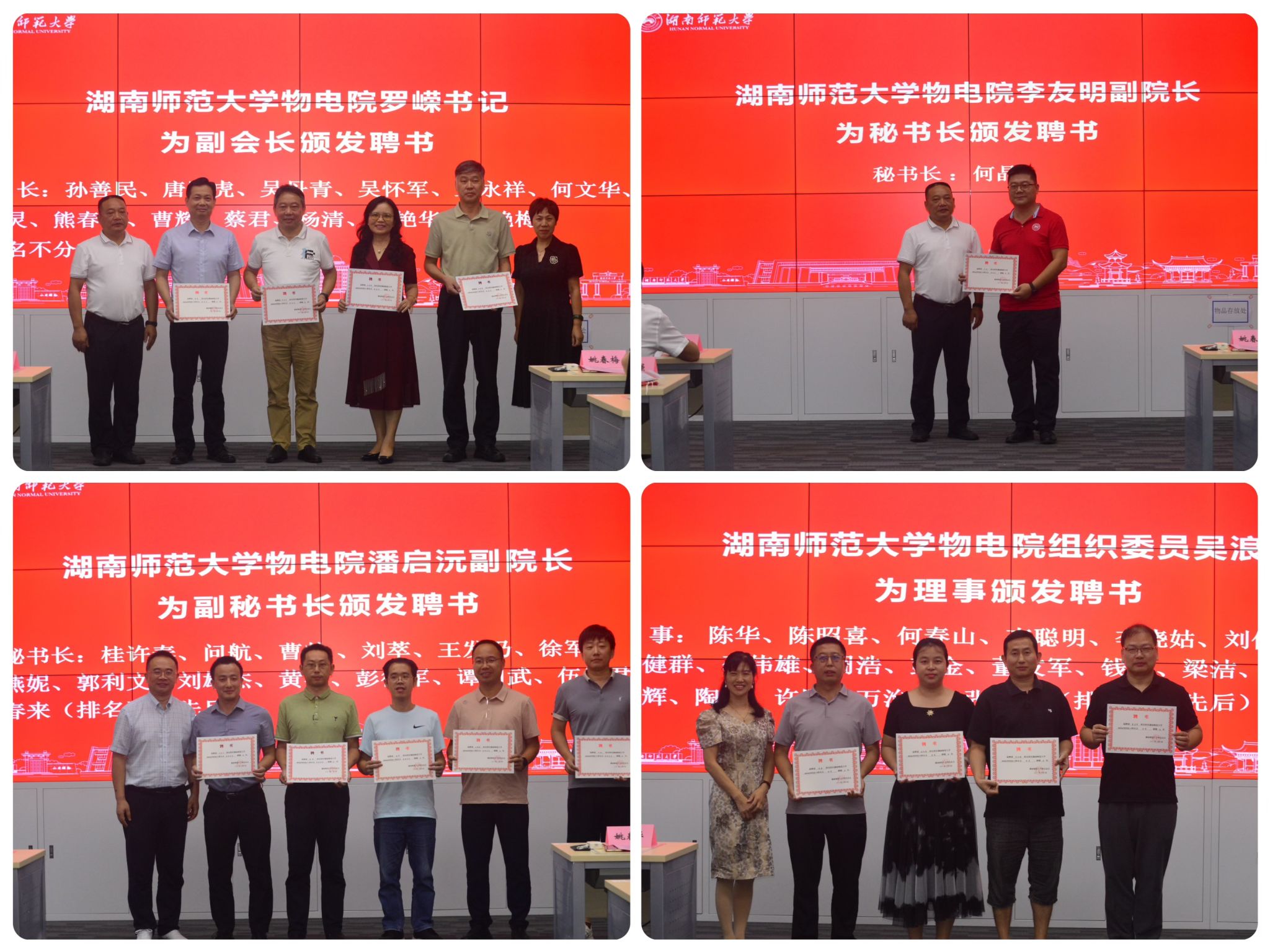 姚春梅向新当选会长许正强授会旗,余志华、罗嵘、李友明、潘启沅、吴浪波等为新当理事会成员颁发聘书。