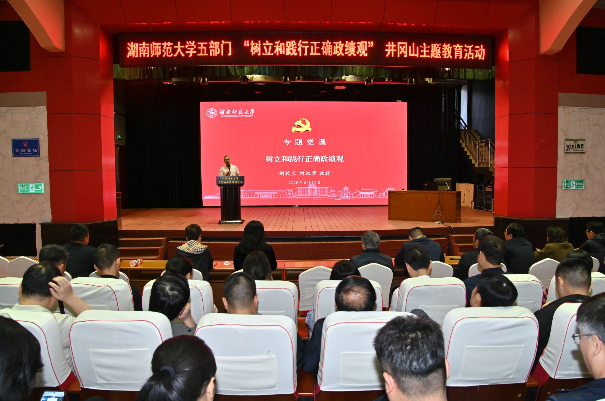 在教育部师德师风建设基地,井冈山干部学院陈胜华教授作“弘扬井冈山精神,树立和践行正确政绩观”辅导报告,系统阐释新时代党员干部政绩观的内涵与实践路径。ok1133诸侯快讯党委书记罗嵘主持专题学习。