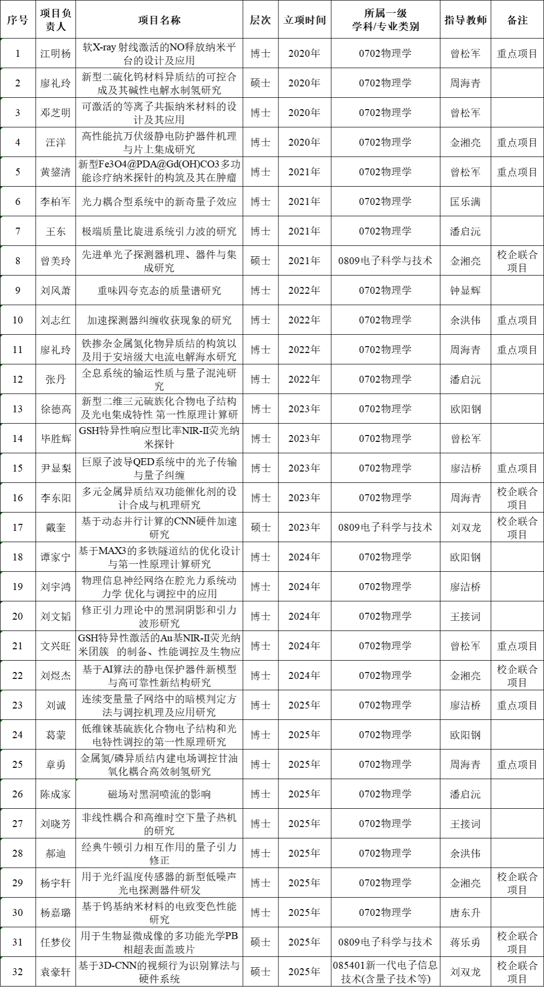 2020-2025湖南省研究生科研创新项目